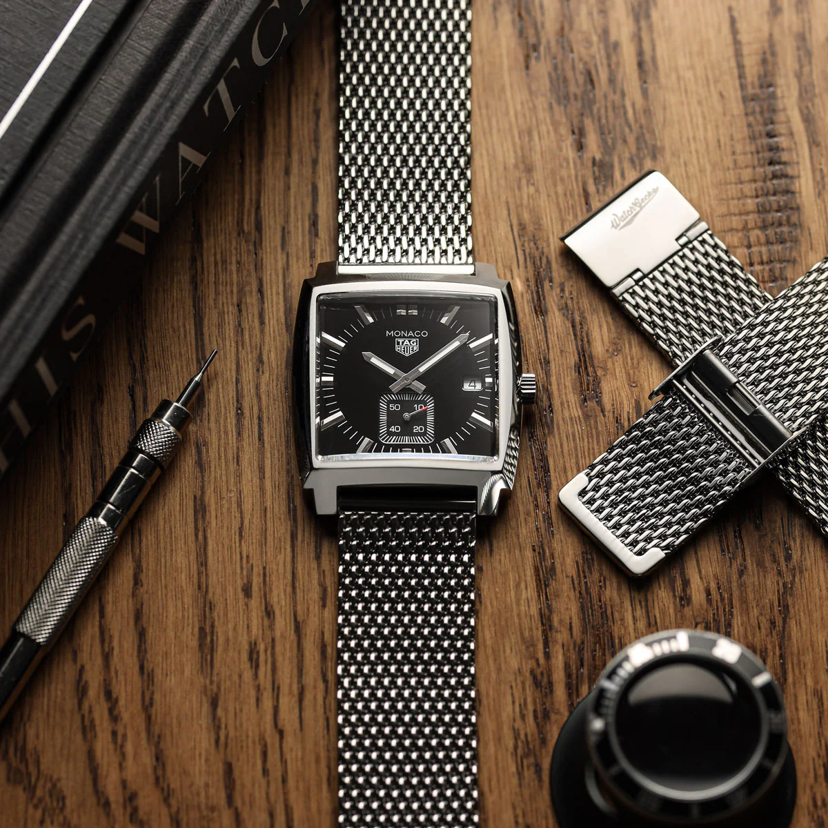 - WatchGecko logo acid-etched on the buckle.