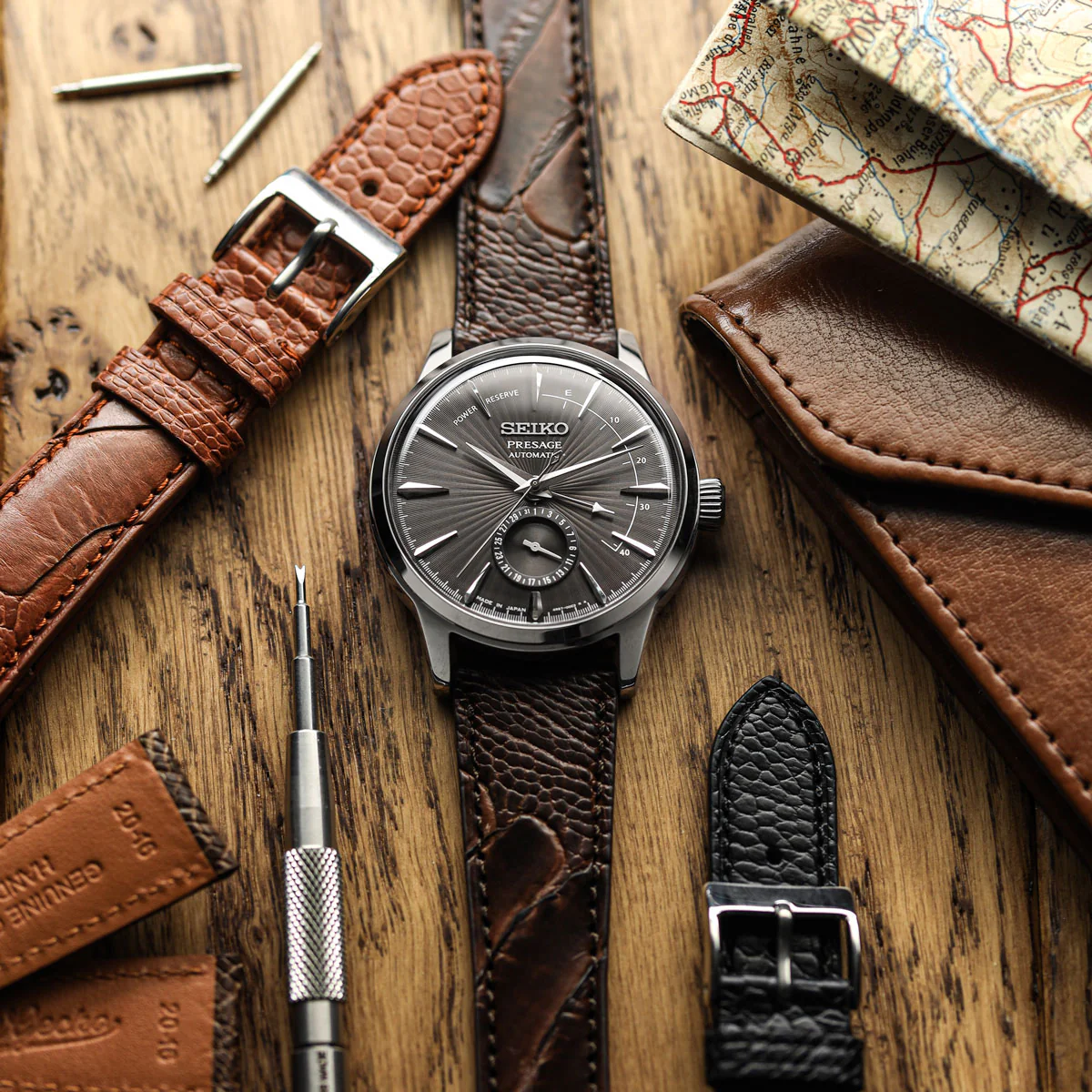 Ostrich leg leather is renowned for its exceptional durability, flexibility, and supple texture. Naturally enriched with oils, this leather is highly resistant to high temperatures and prolonged sun exposure, maintaining its quality and appearance over time. While crafting straps from ostrich leg leather can be more intricate and costly compared to calf leather, the unique qualities and luxurious feel make it a distinctive choice for those seeking something truly special in watch straps.